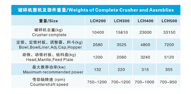 LCH series cone crushers can be converted from the finest to the coarsest simply by replacing the mantle, bowl liner, adapter ring and the wedge bolts.