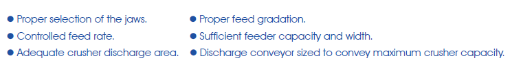 Measurement of the crusher’s closed side setting varies depending on the jaw profile that is being used and has an impact on the crusher’s capacity and product gradation. The following factors will enhance crusher capacity and performance: