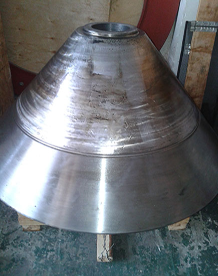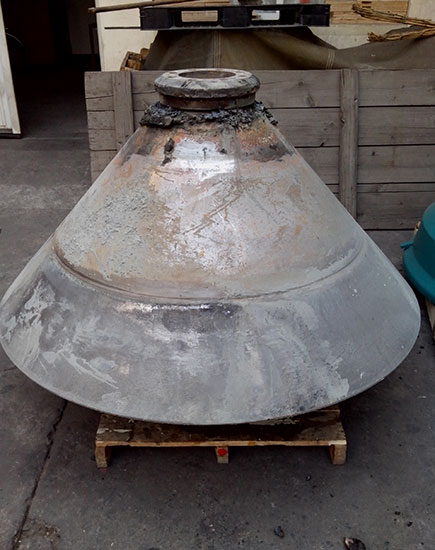 Item in picture is a head of HP500, we’ve done the maintenance in our workshop. The appearance as customer stated is that the lock bolt could not be uninstalled when they were replacing mantle and concave. The real problem was inner thread of locking bolt broken as well as serious abrasion of outer surface of the head after inspection done by our engineer.