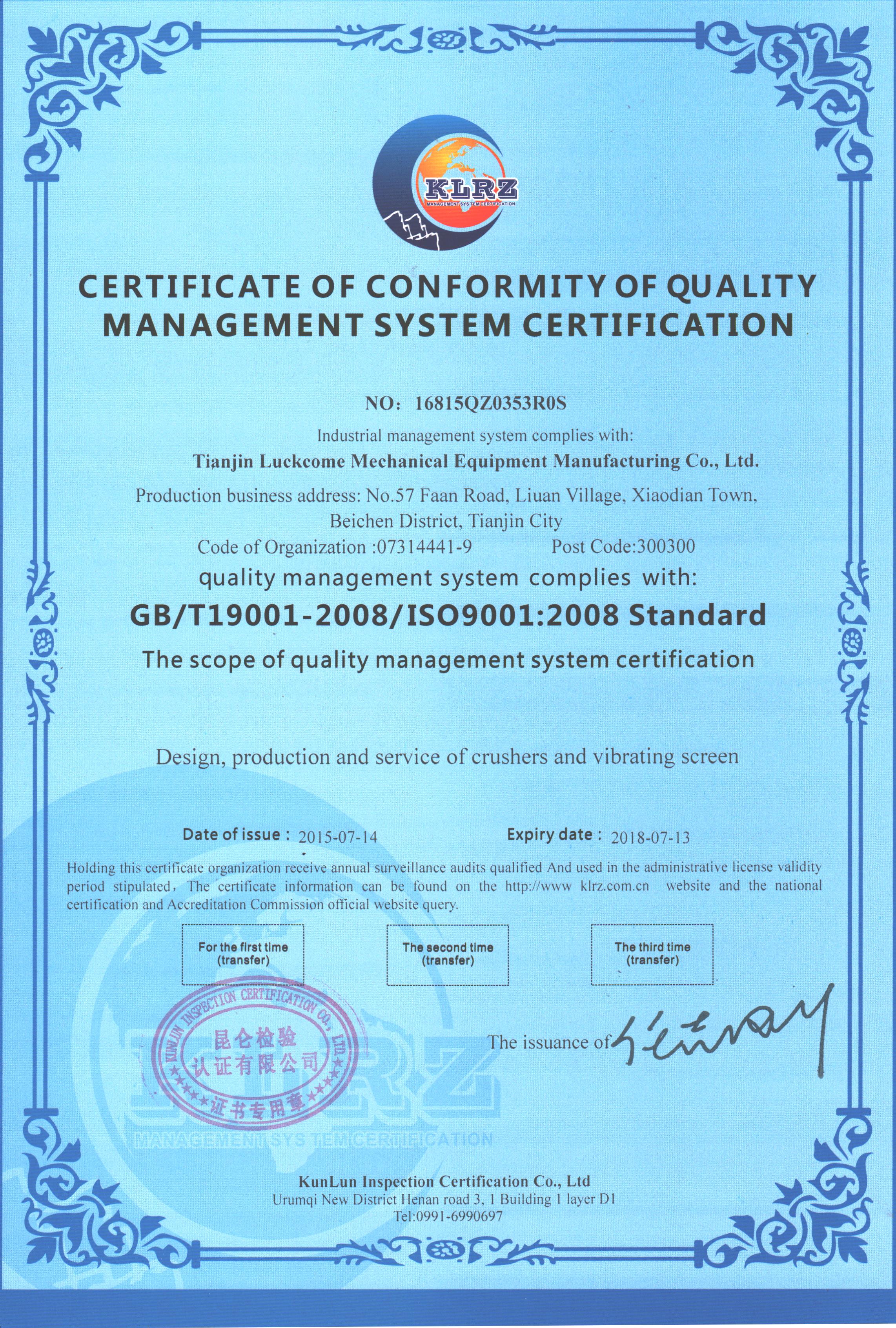 天津市樂礦機械設備制造有限公司 Tianjin Luckcome Mechanical Equipment Manufacturing Co.,Ltd